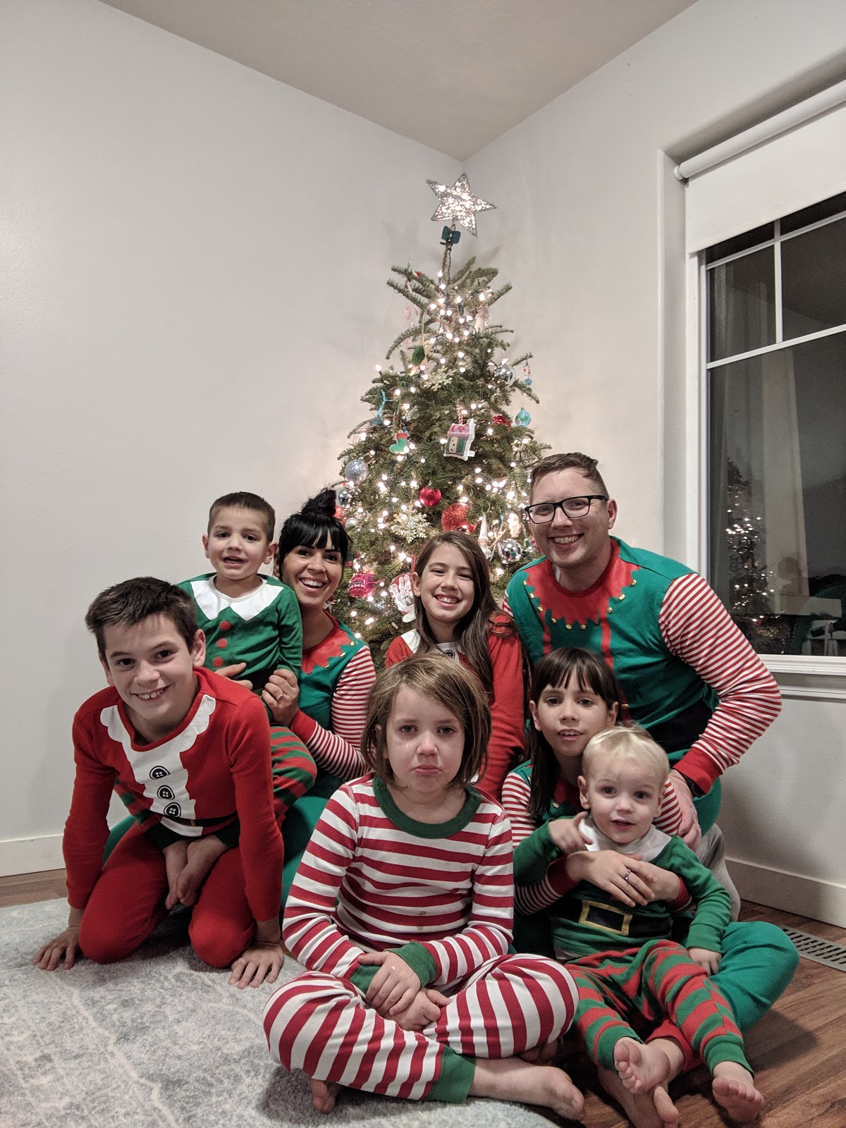 trying to get a nice Christmas eve picture but eleanor was super mad noah accidentally touched her