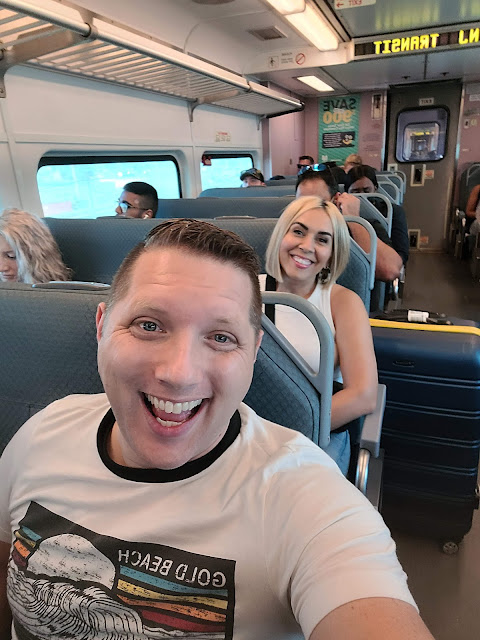 we got on the train from new jersey and the bridge we needed to cross got stuck open so we were delayed and had to go backwards and take the subway instead